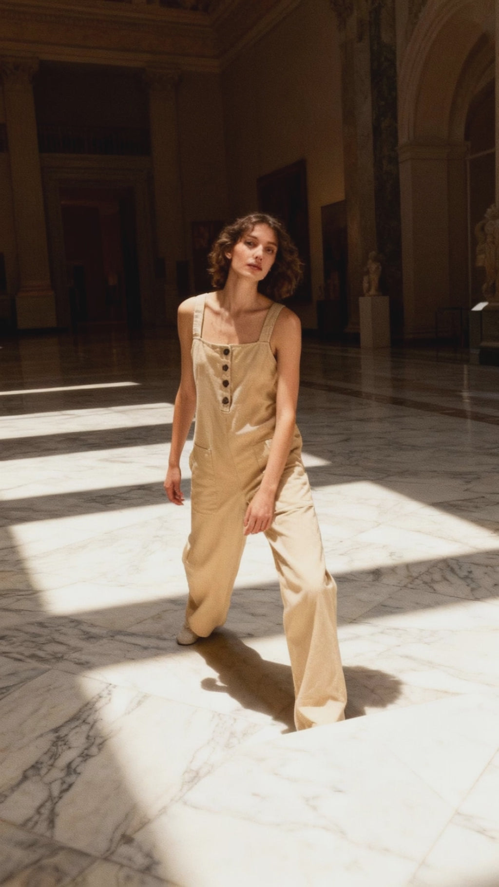 A full button-front closure makes it easy to slip on and off, while adjustable shoulder straps and roomy pockets add function to fashion. The straight-leg cut and relaxed fit make it a perfect base for layering—wear it solo on warm days, or style over a fitted tee when the weather cools.