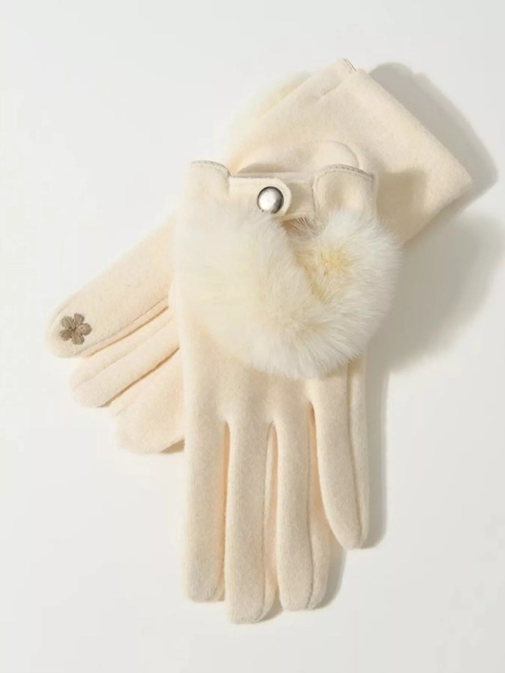Style: Slim faux suede gloves with faux fur trim
